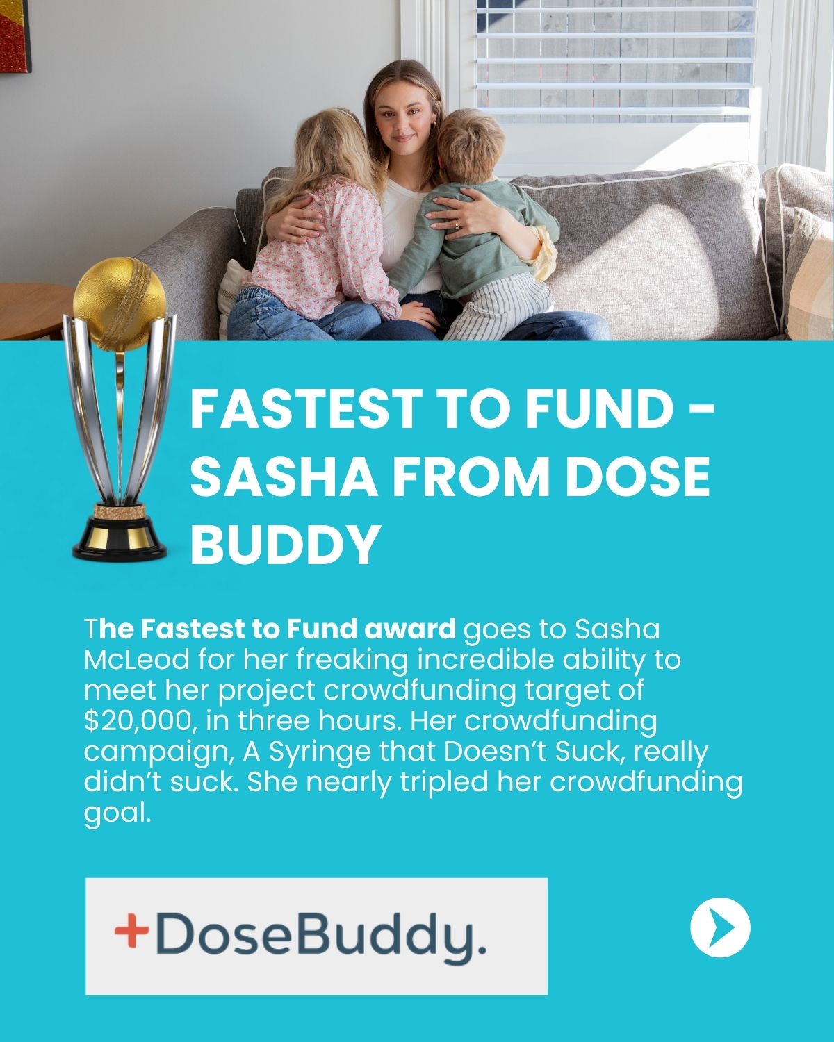 🏆 The Fastest to Fund award goes to Sasha McLeod from DoseBuddy for her incredible marketing, which meant she met her project crowdfunding target of $20,000 in three hours. Her crowdfunding campaign, A Syringe that Doesn’t Suck, really didn’t suck. It went onto raise nearly triple her goal. Learn more about how she did it here.
