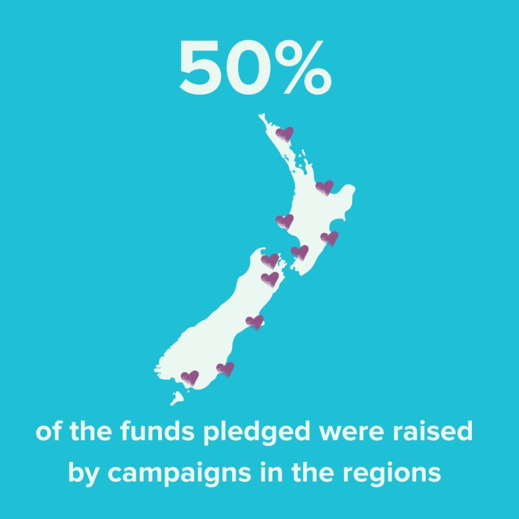 🇳🇿 Us fund Kiwi regions – 50% of the funds pledged were raised by campaigns in the regions.